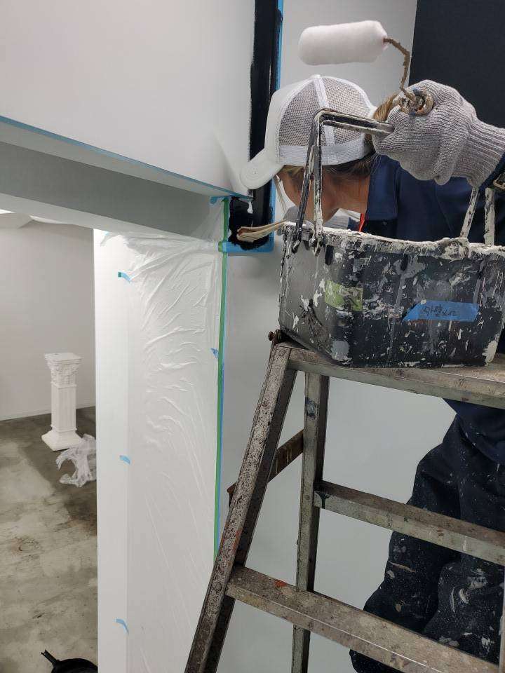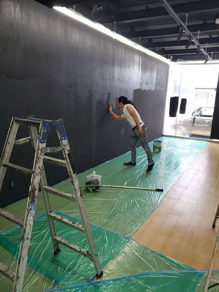 作業内容:イベントルーム内装塗装(白→黒へ)
