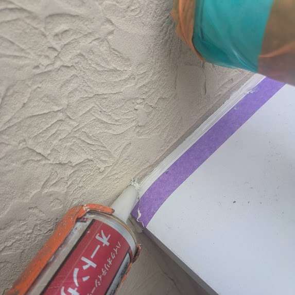モルタル下地は水の侵入で劣化が早くなるため、変性シリコンでコーキング。