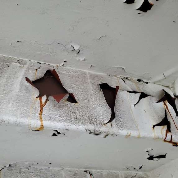 現場を拝見すると、手すりや階段の踏板部分の塗膜剥がれ、錆びの進行、そして雨水による腐食の初期症状が確認されました。