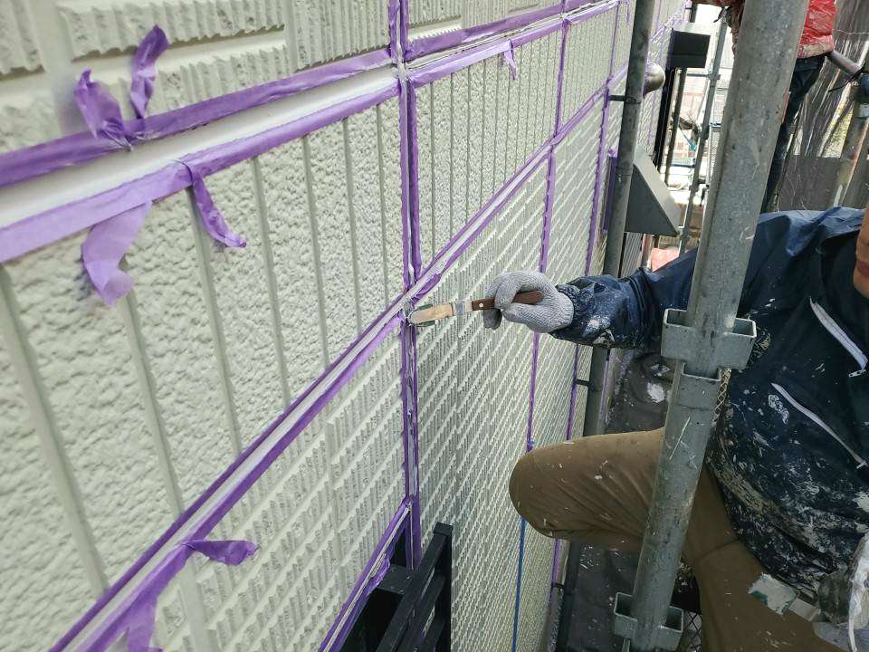 【外壁塗装・屋根塗装】足場仮設・高圧洗浄完了!コーキング作業へ進行中(千葉県松戸市)
