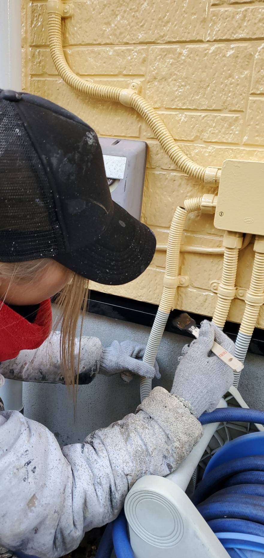高所作業になるため、必ず梯子や足場を使用し、安全具を着用しましょう。
