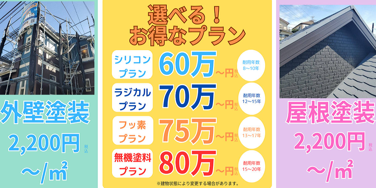 また、前述した金額はシリコン塗料の使用を考慮したものです。