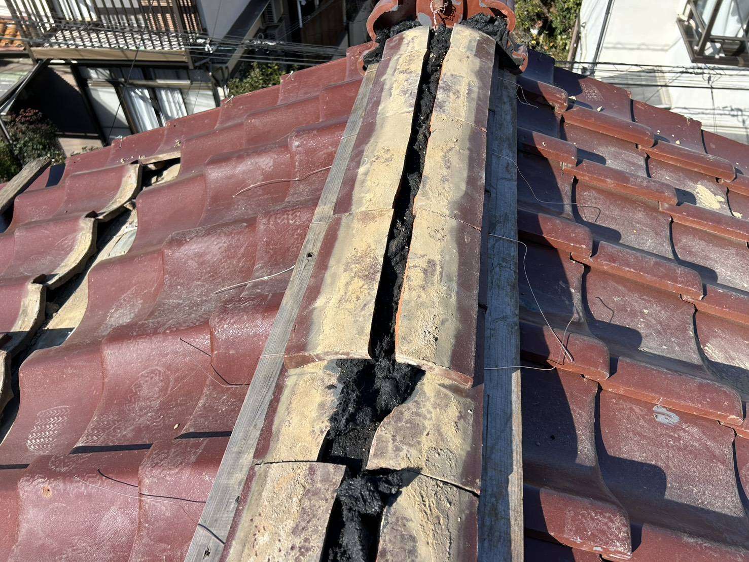 棟瓦の破損や崩壊は、塞いでいた屋根の隙間が露わになってしまう可能性があります。